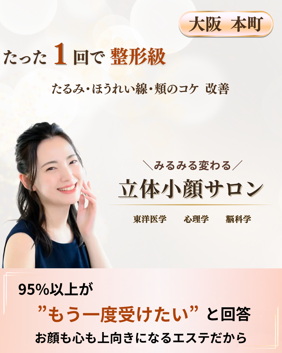 私は緊張しやすいタイプなので、サロンに入ったときは少しドキドキしていました。 でも、オーナーの優しい雰囲気にすぐ癒され、カウンセリングもとても丁寧で安心できました。 施術中、半分だけ終わった段階で鏡を見ると、右だけ法令線が消え、目の位置も上がっていてびっくり! 顔が動かしやすく、肌のトーンも明るくなって若返ったみたいで、思わず笑顔に。 嬉しくなって帰り道に娘に写真を送ったら、『お母さん、すごく綺麗!』と言われて幸せな気持ちになりました!